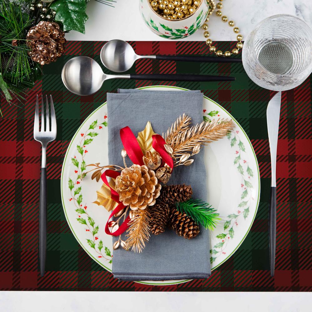 Yeni Yıl Dekoru 4'lü Amerikan Servis – Ekose Kırmızı Yeşil Geyik Desenli - 4'lü (30x50 cm)