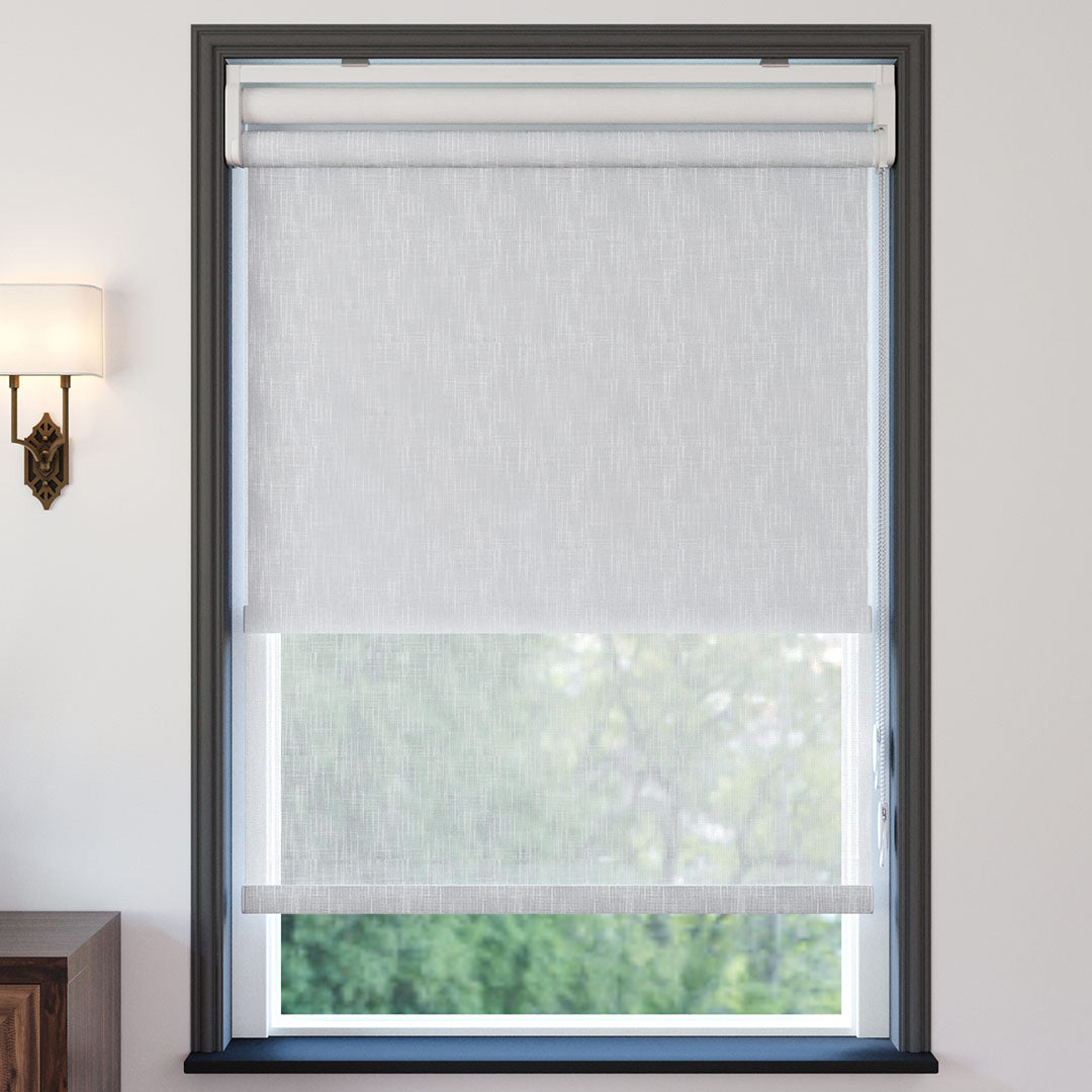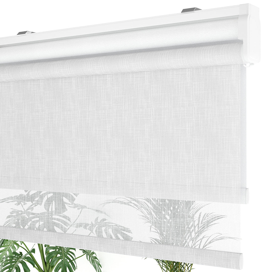 Beyaz Desenli Çiftli Stor Perde | çiçek aç