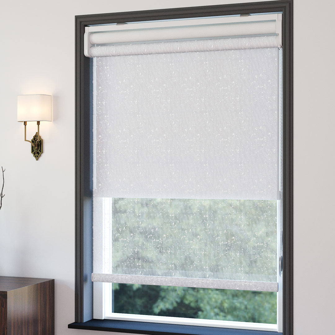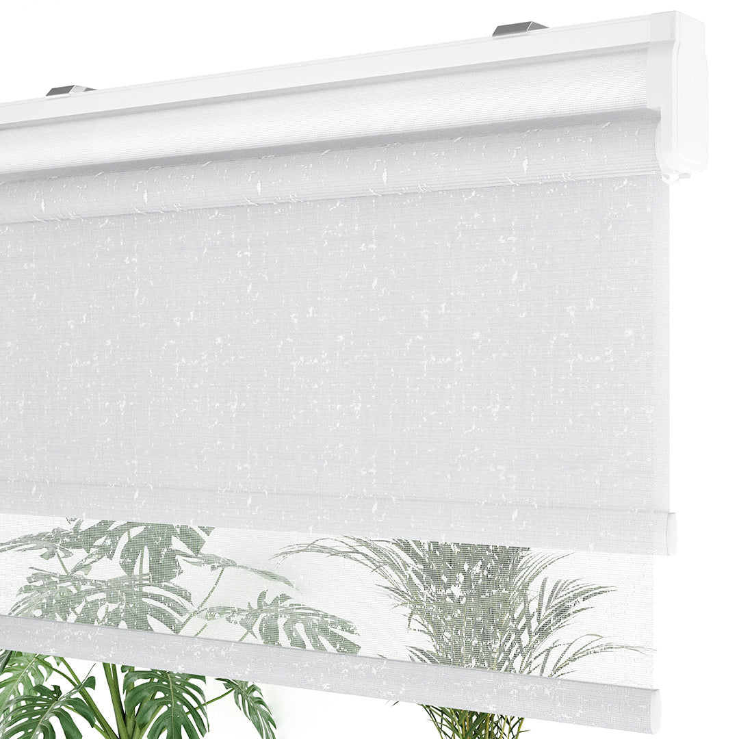 Beyaz Desenli Çiftli Stor Perde | Octavia