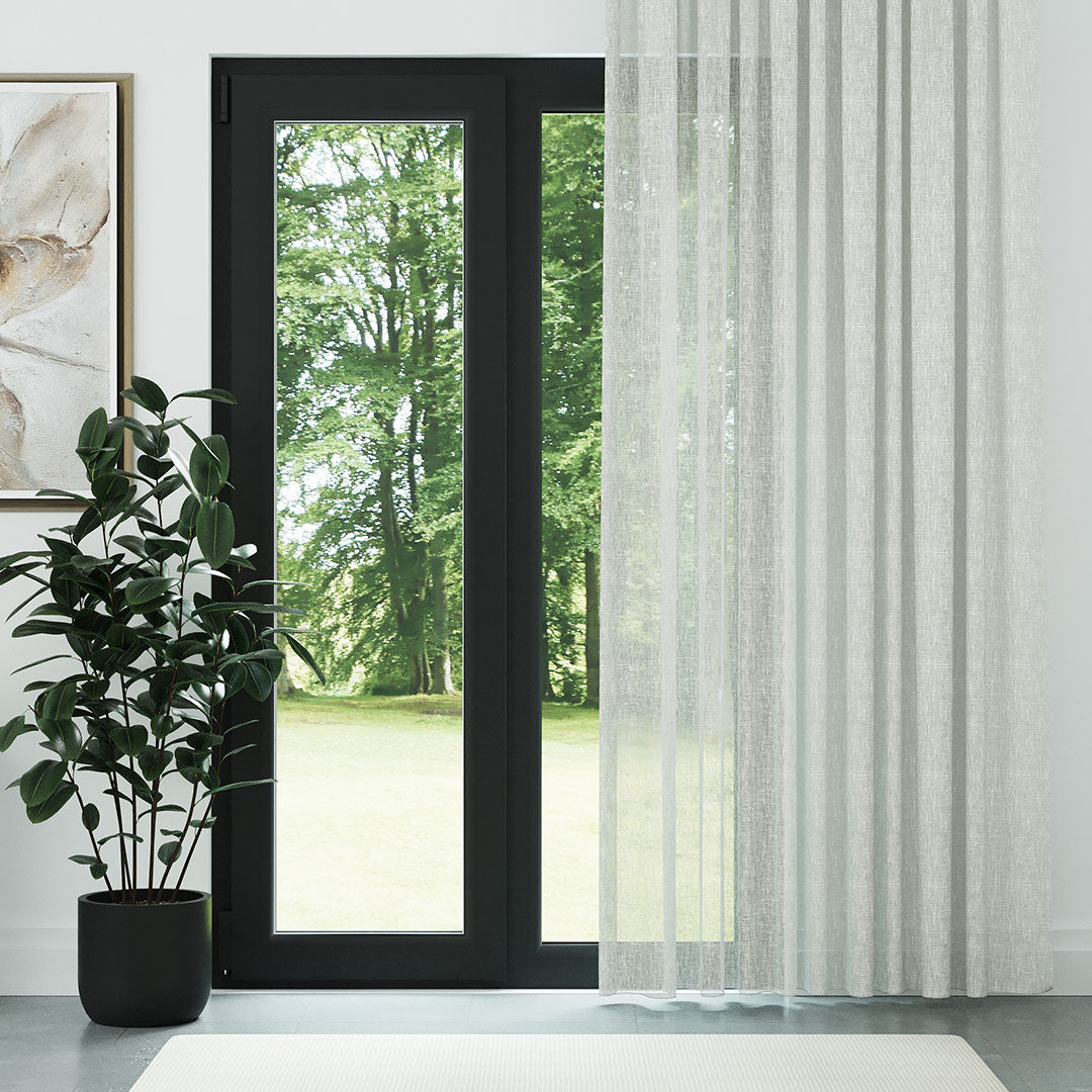 Ekru Katlamalı Keten Düz Tül Perde | Mistra