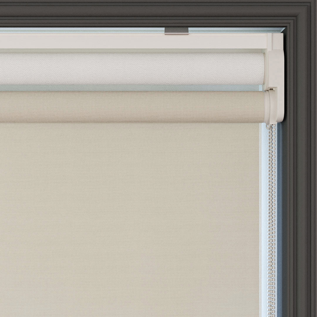 Krem Düz Çiftli Stor Perde | Saphira