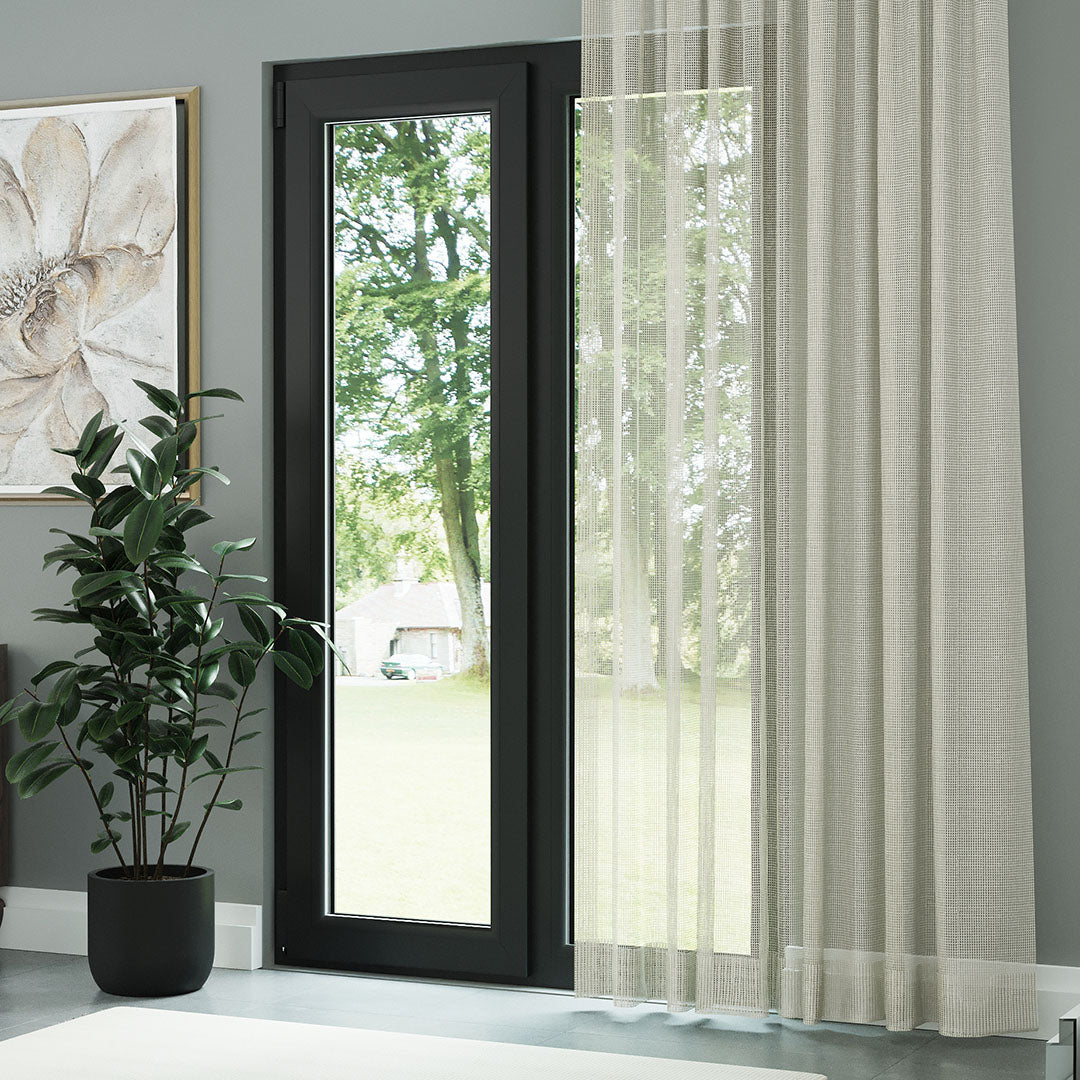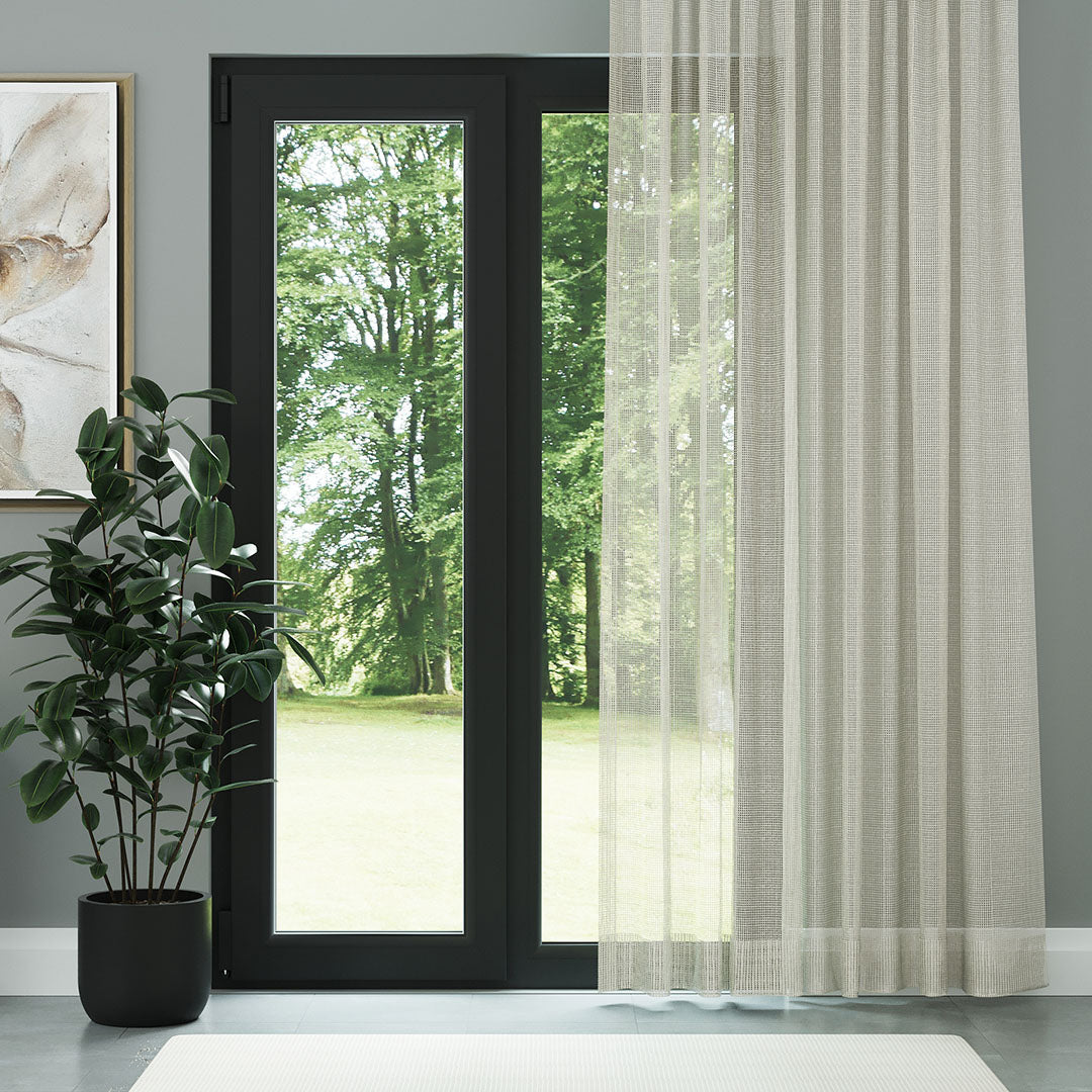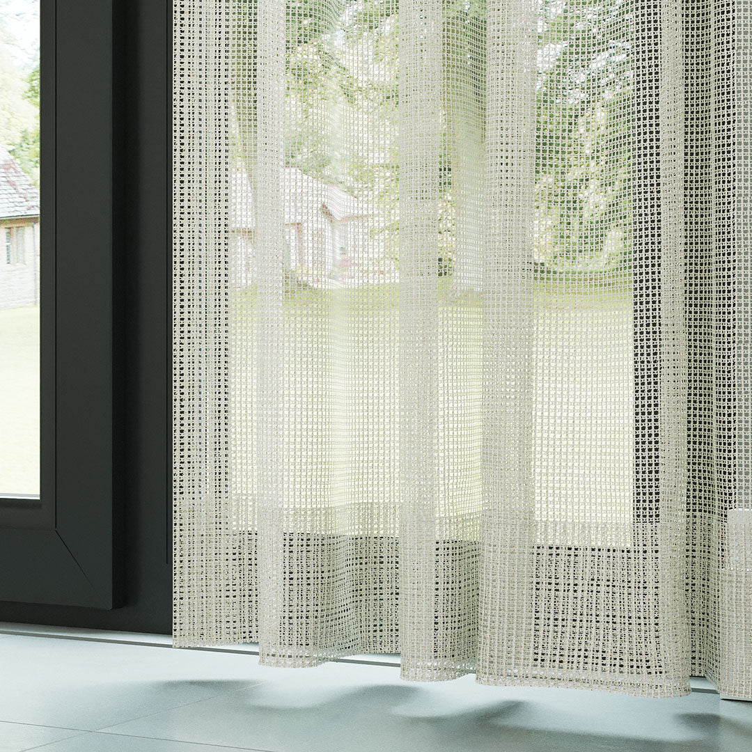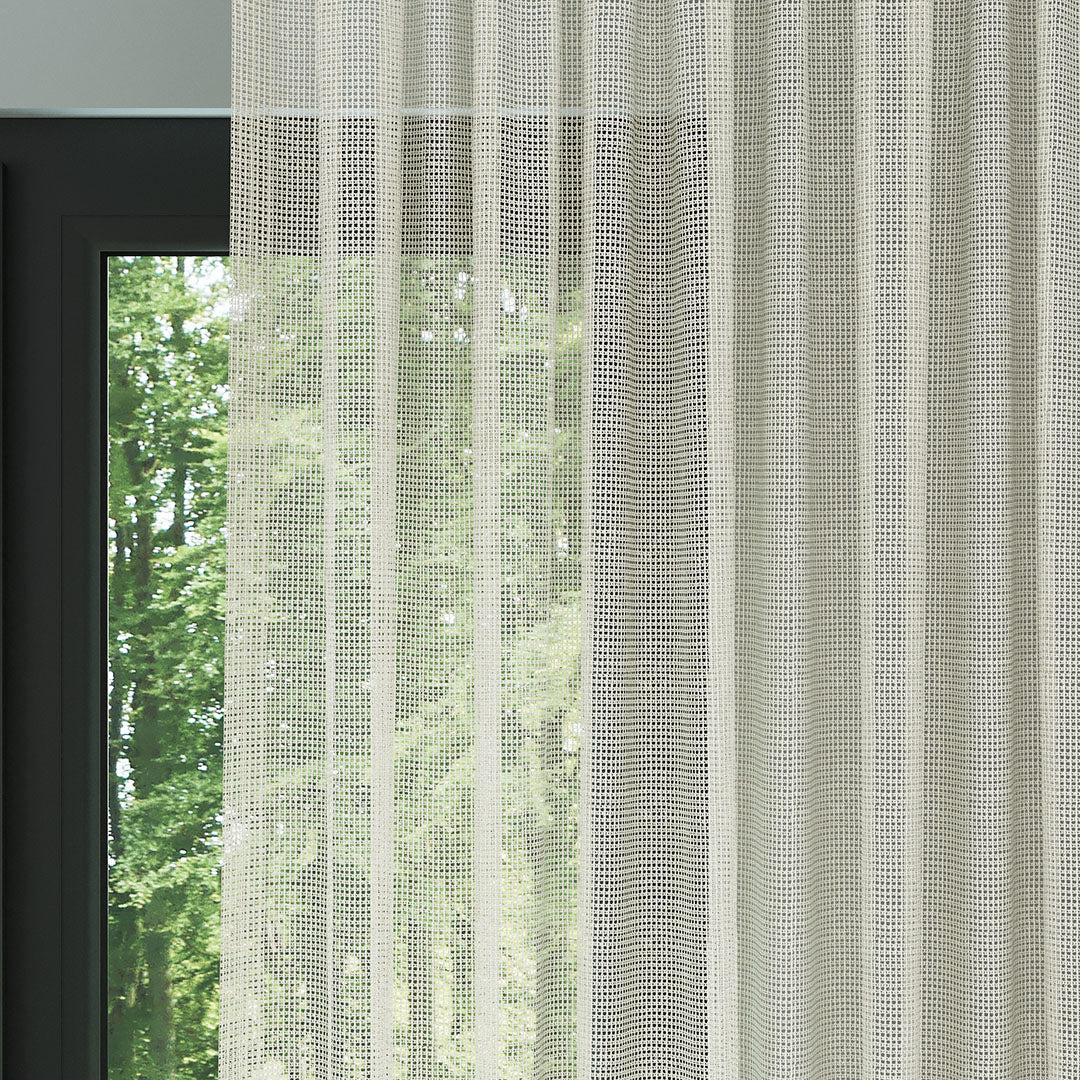 Krem Örme Dosyası Kare Zemin Düz Tül Perde | Inessa