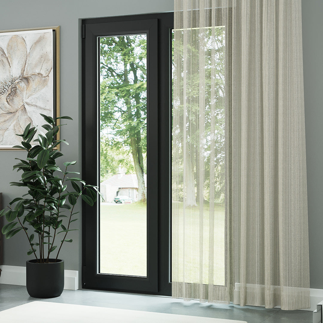 Krem Trend Kare Dosya Örme Düz Tül Perde | Alacakaranlık