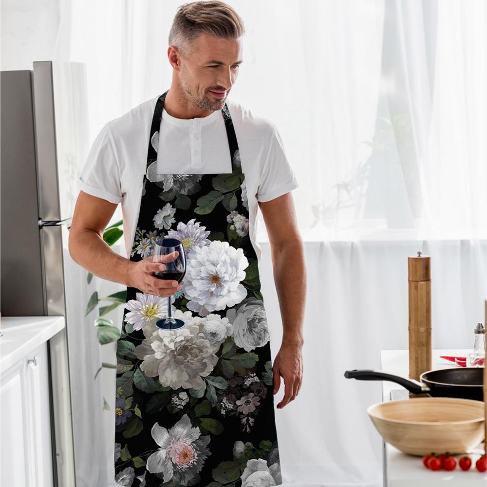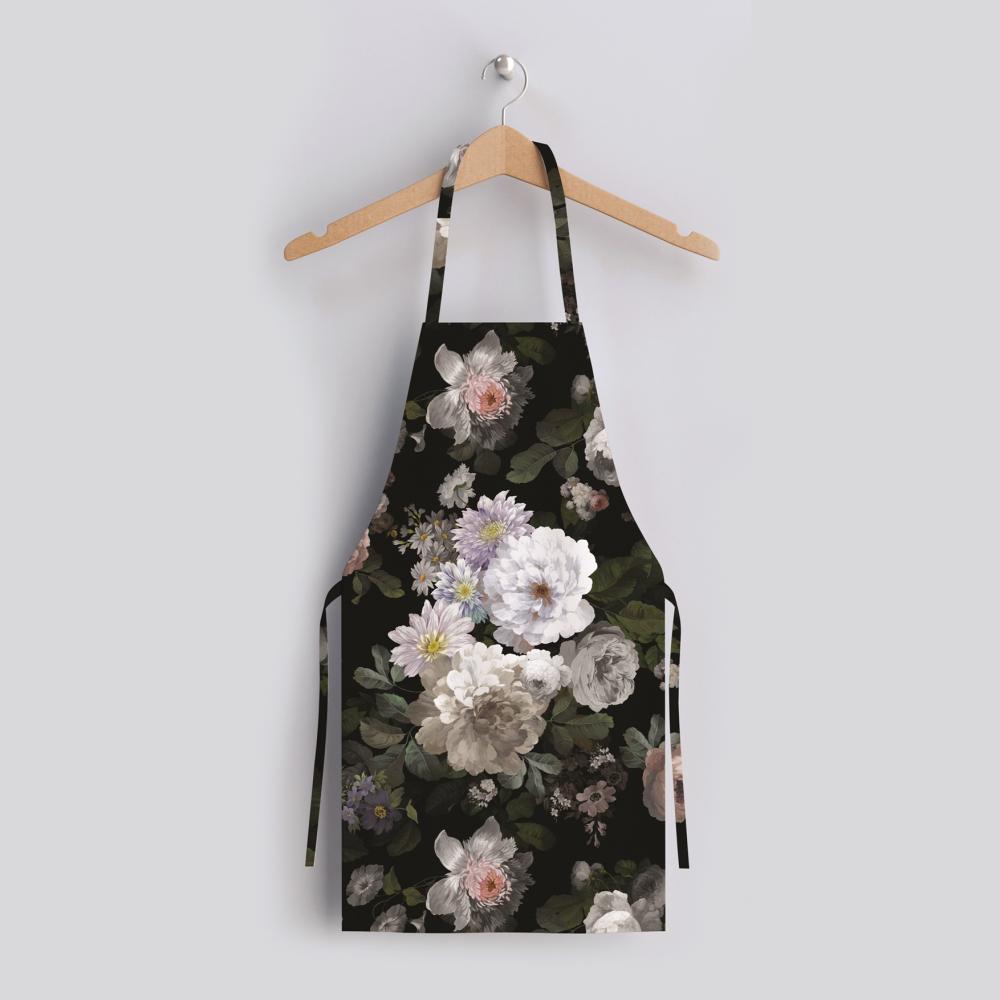 Siyah Çiçek Tasarımlı Mutfak Önlüğü - AP100
