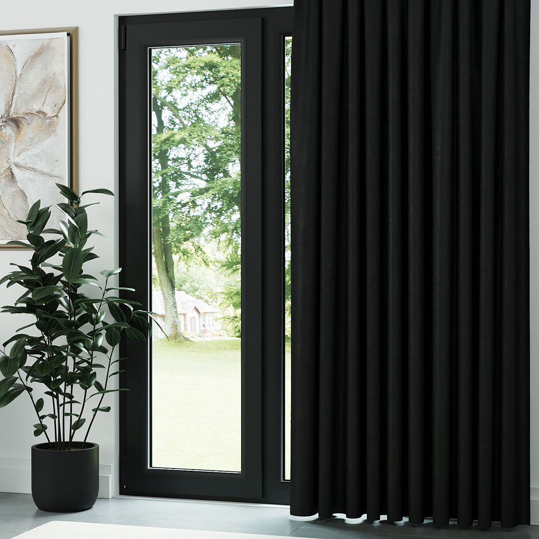 Siyah Parlak Fitilli Kadife Fon Perde | Kylo