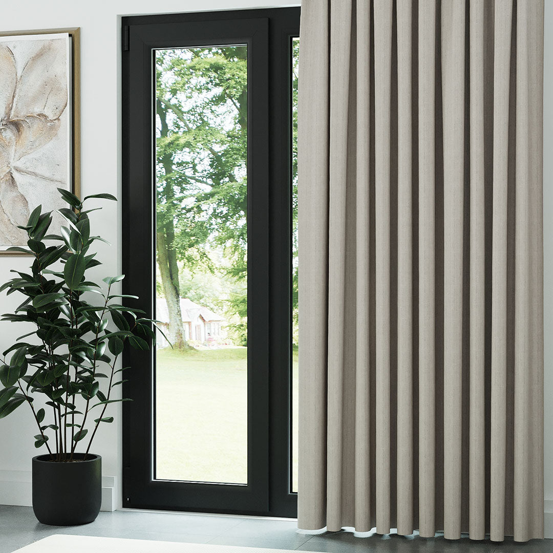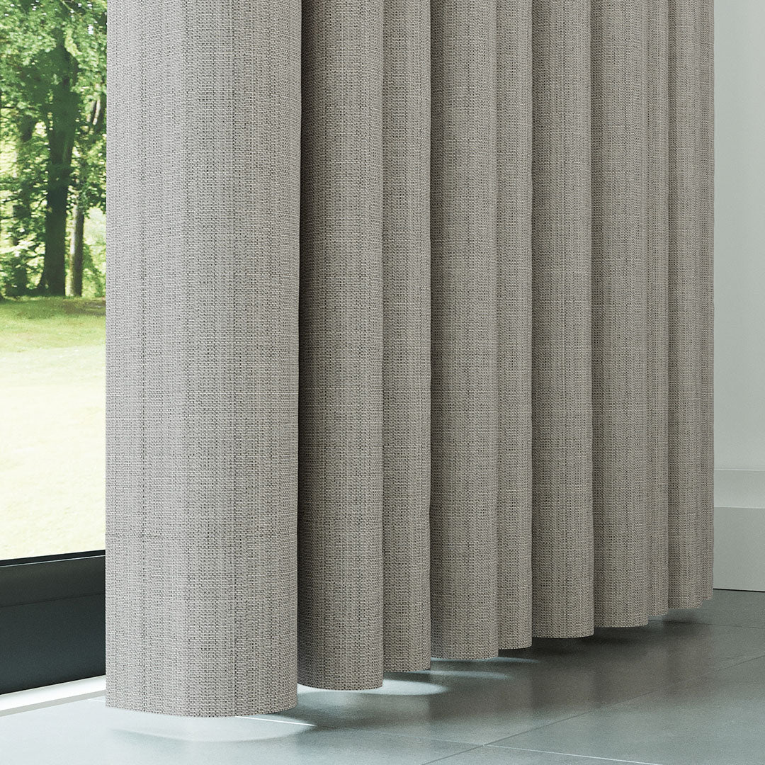 Taş Rengi Keten Desen Efekli Dökümlü Fon Perde | Ezri