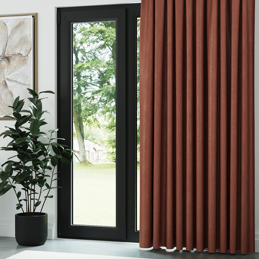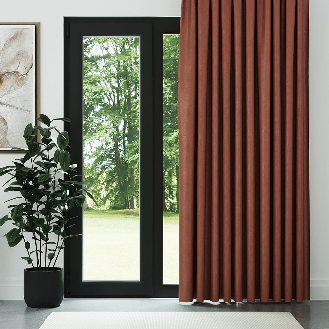 Turuncu Parlak Fitilli Kadife Fon Perde | Kylo