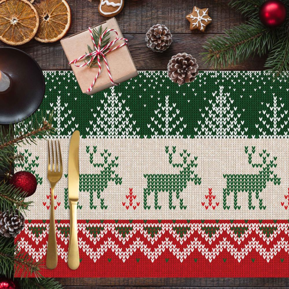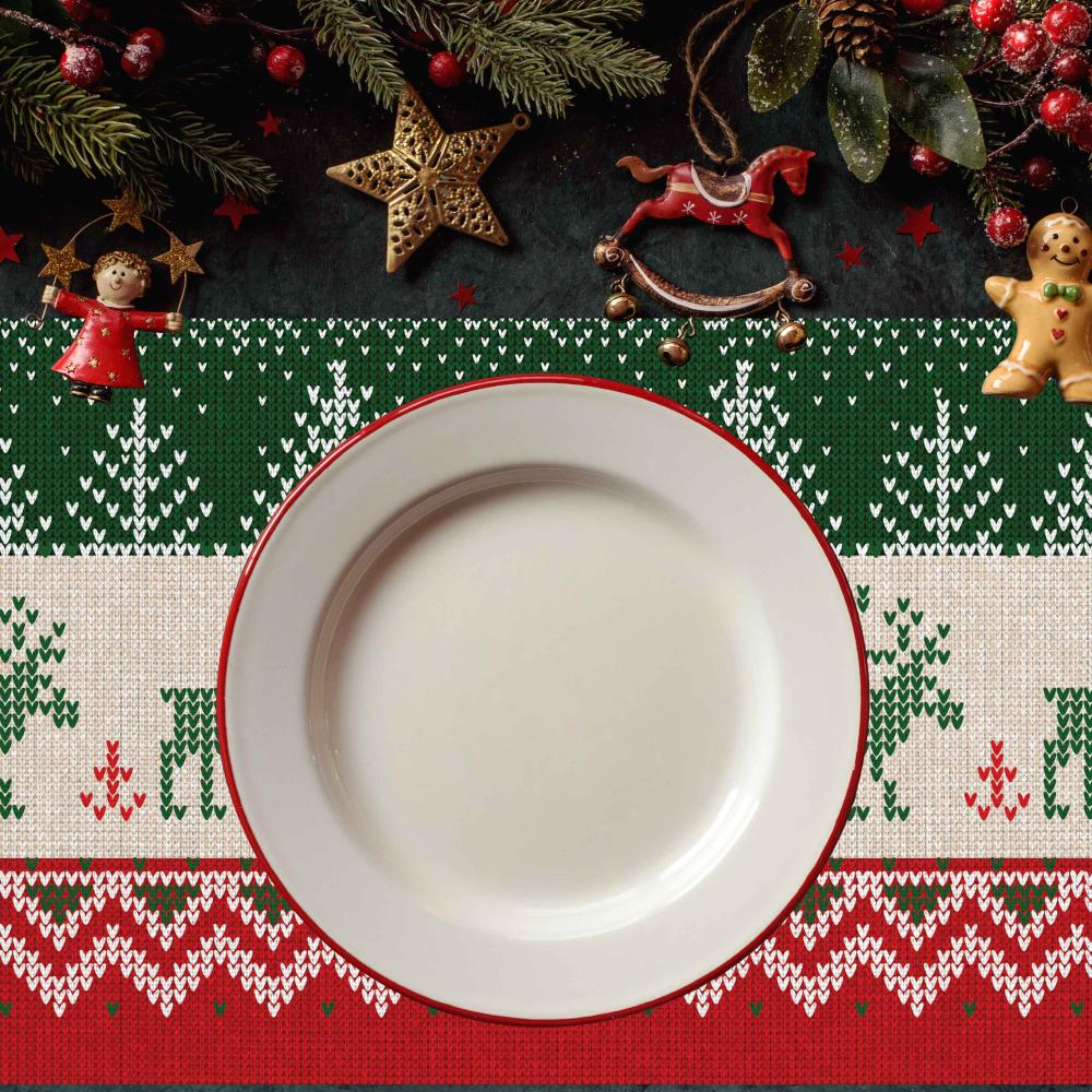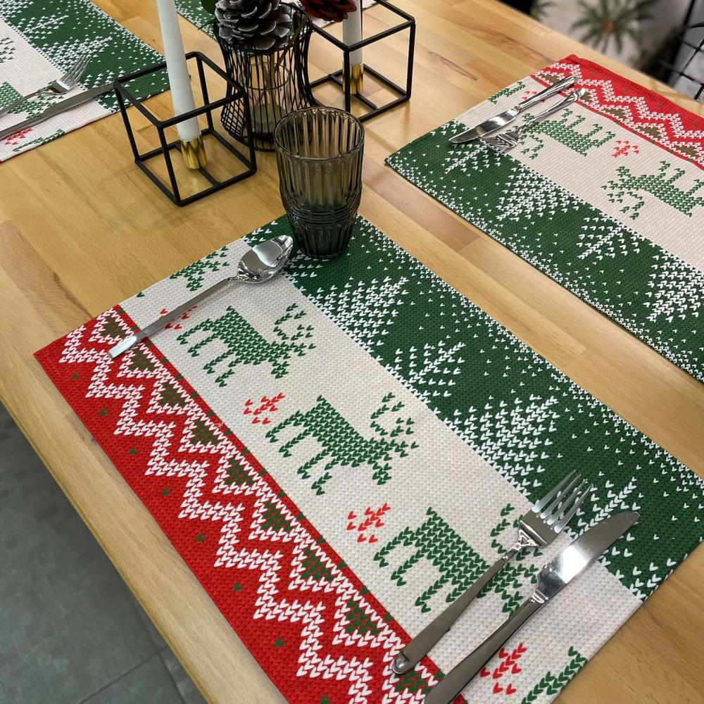 Yılbaşı Temalı Amerikan Servis – Kırmızı Yeşil Geyik Desenli - 4'lü (30x50 cm)